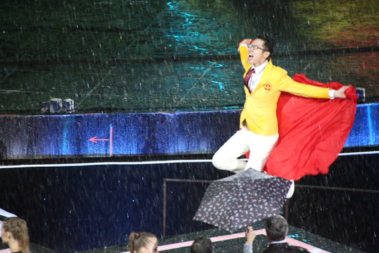 颁奖仪式约进行到一半,突然下起了雨。这下,光滑的领奖台更滑了,不止一位其他国家和地区的第45届世界技能大赛(以下简称“世赛”)获奖者在登台领奖时摔了跤。