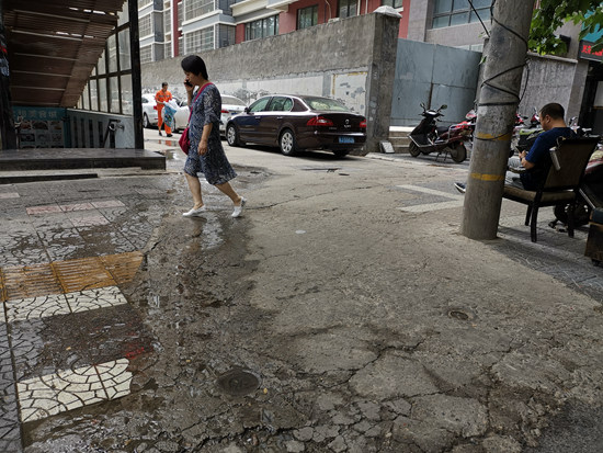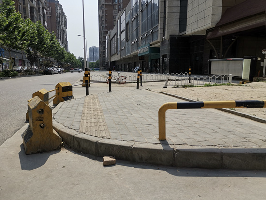 另一种情况也是常有的:走了很长一段人行道,到了尽头发现没路,只好原路返回,拐到马路上,与机动车一同穿行——这意味着,一旦出事,还要承担违法的责任。“大程子好妹妹”就曾出过一次车祸。当时,人行道被堵,她被迫移到马路上。一辆小货车从后面追尾,把她撞到地上。