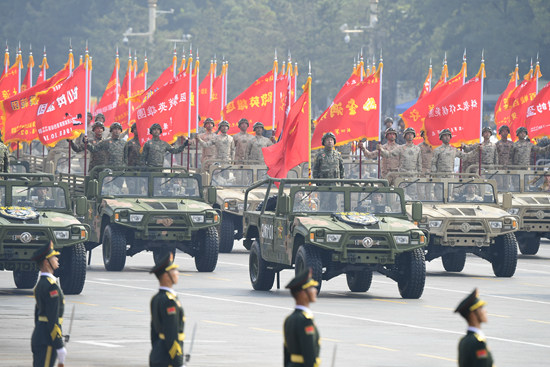 10月1日上午,庆祝中华人民共和国成立70周年大会在北京天安门广场隆重举行。图为受阅的战旗方队。新华社记者郭绪雷/摄
