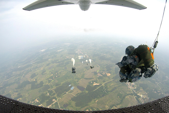 这是一个非常危险的动作,如果弹簧钩在颠簸中没有挂牢,他们的主伞就无法打开。“我是战斗小组组长,如果我不跳下去,地面的战斗没法展开。”徐成解释说。