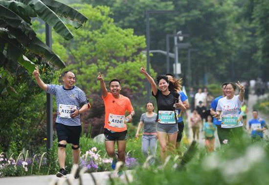 选手在重庆照母山森林公园参加重庆市第二届“超越杯”山地迷你马拉松比赛。新华社供图