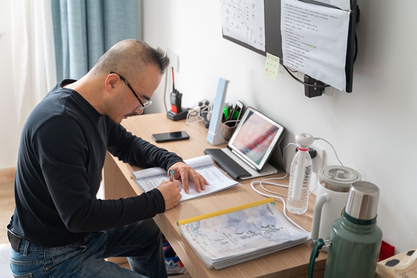《清落》剧组工作人员在房间内办公。