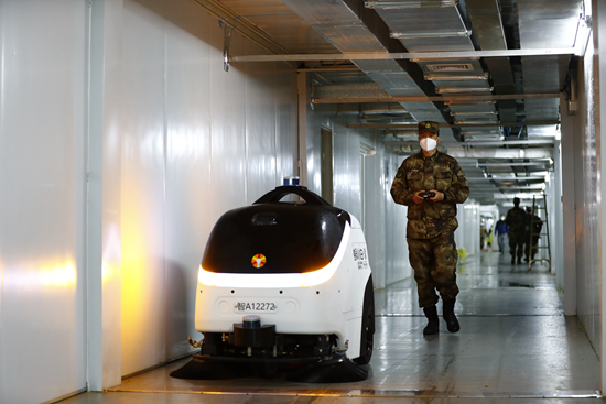 医院内配有智能清扫机器人、履带式防疫消杀机器人和猛士卫生防疫车,但人工洗消仍然必不可少。