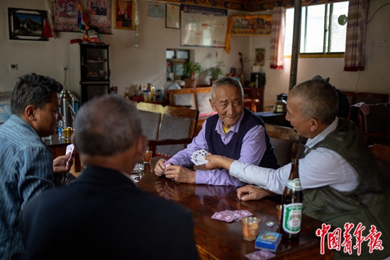8月24日,林芝市巴宜区八一镇巴吉村,村里的老人在家庭茶馆里打牌。巴吉村是远近闻名的富裕村,先后成立汽车运输队、种养殖专业合作社等,2019年村集体收入1200多万元。