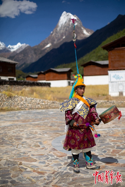 8月25日,林芝市工布江达县错高村,从事非物质文化遗产“梗舞”表演已有两年的村民白玛罗布。错高村是林芝市唯一一个保护完整的古村落,2019年该村57户农牧民搬迁至新村,计划通过旅游产业改善生活。