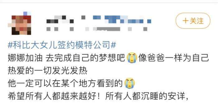 很多球迷听到这个消息,都对小姑娘的选择表达了鼓励,有人说,自己有一种替科比看着她长大的感觉。