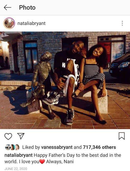 此后一年多的时间里,她们的生活都伴随着对亲人的思念。父亲节的时候,娜塔莉亚晒出从前和父亲的合影。那时的科比更年轻一些,和女儿一起坐在街头模仿铜像的动作。