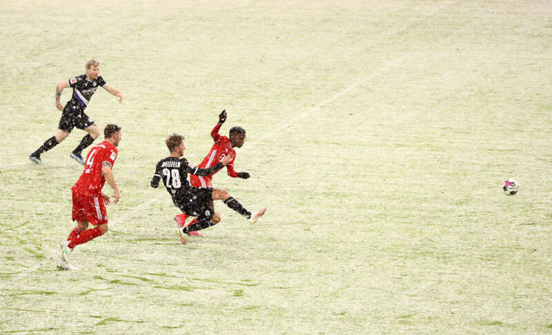 由于拜仁在上周参加国际足联世俱杯,因此本轮对阵比勒费尔德的比赛被推迟举行。第9分钟,刚刚从比利时安德莱赫特租借而至的荷兰球员弗拉普在禁区线附近无人看守,接队友传球后转身射门,洞穿了诺伊尔的十指关。第37分钟,弗拉普开出落点极佳的角球,皮珀头球攻门扩大比分。比勒费尔德上半场仅3次射门,就取得2:0领先。