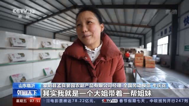 蒙阴县孟良晏园农副产品有限公司经理 全国劳动模范 牛庆花:我就是一个大姐带着一帮姐妹,在这路上开始往前行。学习六姐妹,建功新时代,小康路上,姐妹同行。