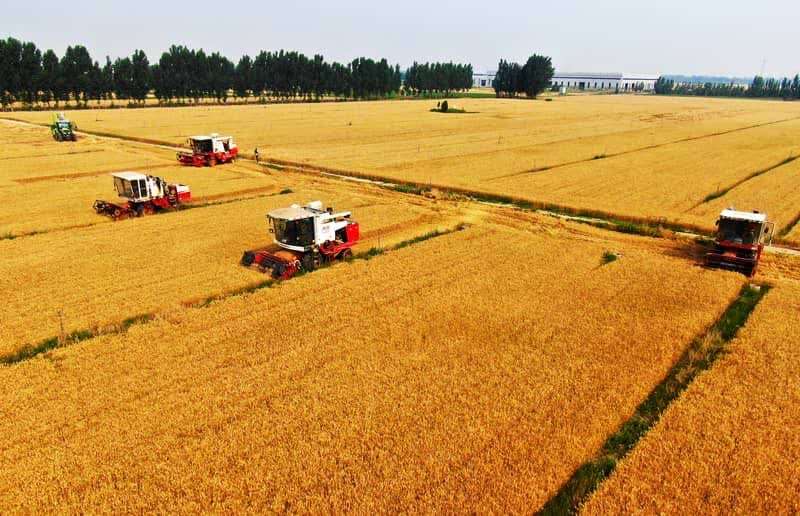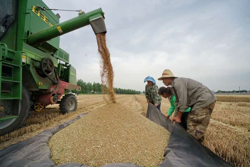河北省滦州市滦城街道邹家洼村村民在收获小麦(2020年6月18日摄)。新华社记者 牟宇 摄