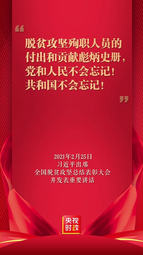 习近平:脱贫攻坚殉职人员的付出和贡献彪炳史册,党和人民不会忘记!共和国不会忘记!