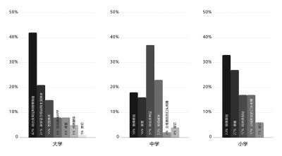 教育方法上,学生参与度仍有较大的提高空间,课堂活力有待进一步激发。如何弘扬好伟大抗疫精神,关键在以怎样的方式感染人。调研组发现,在教育方法上,还是多以教师讲授的方式进行,学生以听众、旁观者的身份被动接受。数据显示,70%的小学生、62%的中学生、75%的大学生表示抗疫精神学校教育主要通过“老师单向讲授”的形式进行,这在某种程度上导致了学生参与度不高、主动性不强,课堂活力有待激发。