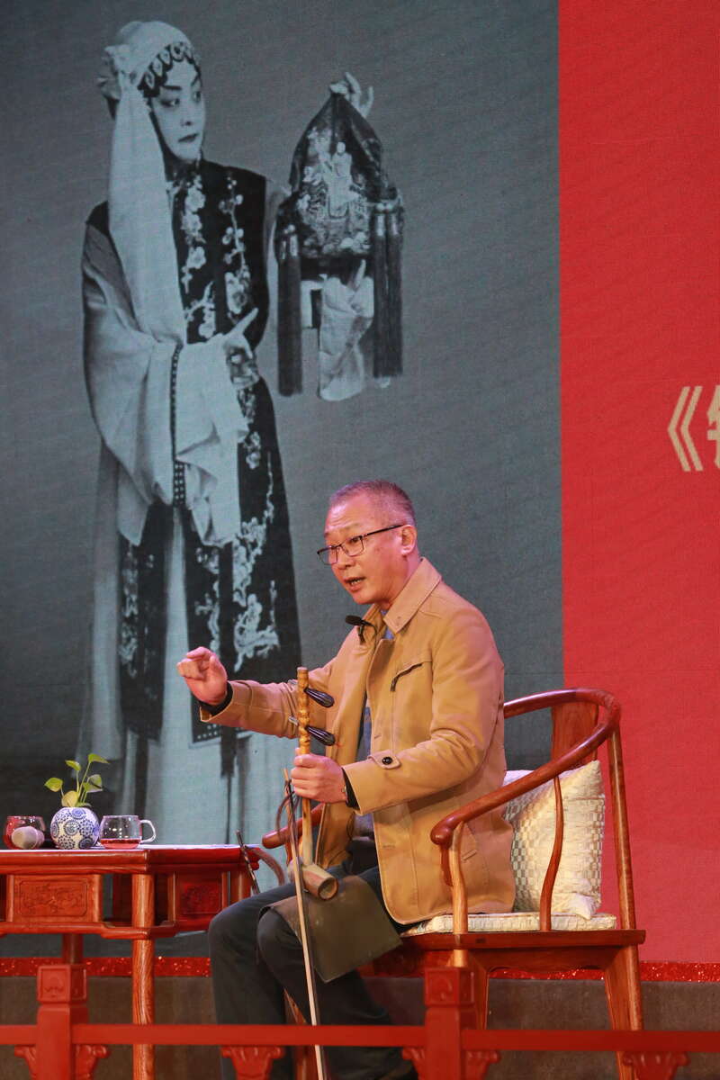 “舞幽壑之潜蛟,泣孤舟之嫠妇”,钟长江在讲解中说,戏曲艺术从杂剧、昆曲到京剧,诞生了包括京剧程派舞台经典《锁麟囊》在内的一批殿堂级作品,他们代表了中国传统戏曲在不同历史时期的最高成就。《锁麟囊》用中国传统哲学的叙事方法,讲述了一个蕴含哲理禅意的温暖故事,传递出了中华民族尊崇的精神意境和人生智慧。戏曲大师程砚秋集毕生才华为《锁麟囊》创制的唱腔,更成为中国京剧音乐的典范。