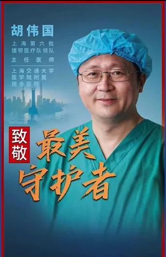 2020年2月9日,胡伟国作为上海第六批援鄂医疗队领队率136名医护人员出征。临行前,学生给他制作了海报“今天你们出征,明天我们接棒 ”,一直珍藏在他的手机里。