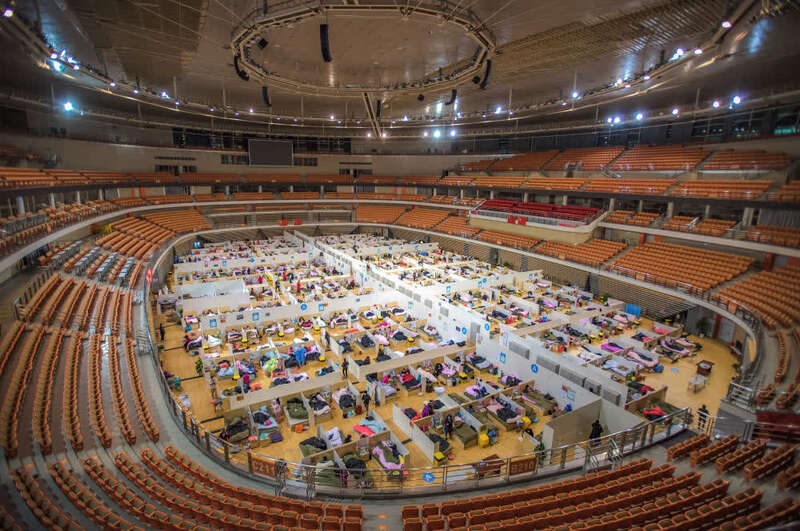 2020年2月17日拍摄的武汉体育中心方舱医院。新华社记者 肖艺九 摄
