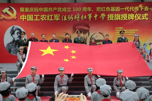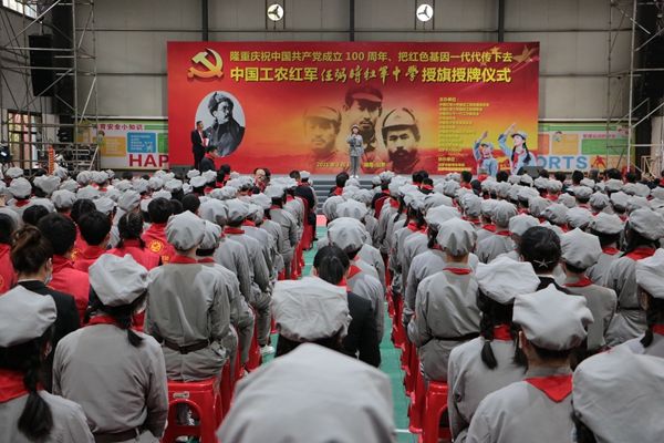 为迎接建党百年华诞,3月17日,在湖南省汨罗市,湖南汨罗任弼时红军中学授旗授牌仪式举行。在仪式上,红军小学旗帜高高飘扬,红军小学校歌嘹亮唱响。