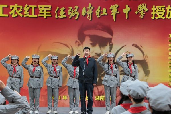 湖南汨罗任弼时红军中学授旗授牌仪式举行