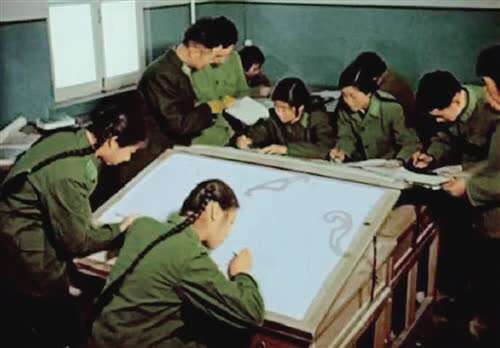 “东方红一号”卫星的研制人员正在作图。(资料照片)