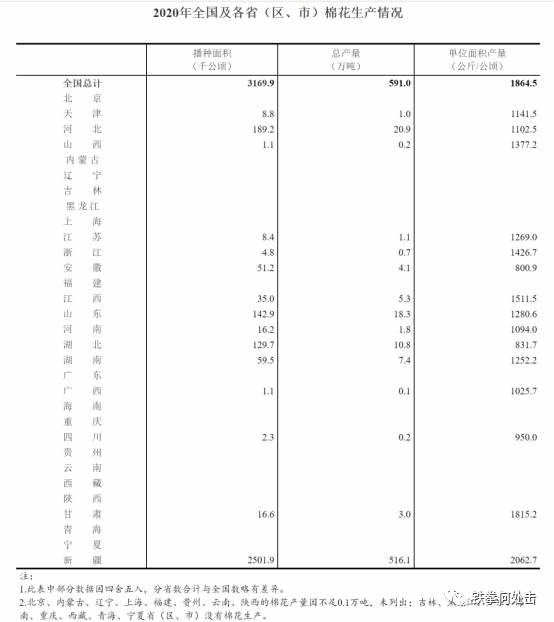 得益于得天独厚的气候条件,又是全国唯一种植补贴地区,新疆的棉花产量一直占据全国产量的绝对多数。以2020年为例,新疆棉花产量占据了全国总产量的87%,全世界的20%。新疆棉花是各类终端产品原料的不二之选。