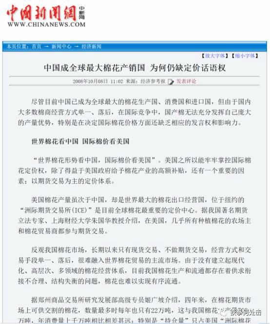 发展才是硬道理。没过几年,从棉花上游生产,中间的纺织加工,再到下游消费,中国顺利通关了棉花产业链。这时候,主导定价权便被提上了议程。
