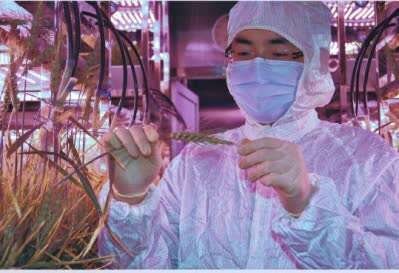 北京航空航天大学“月宫一号”实验人员在“月宫一号”舱内工作。图片由北京航空航天大学提供