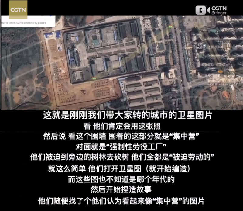 为了展现外媒捏造出一所“集中营”有多么“随意”,杰森打开了自己所在城市的卫星地图,现场进行了模拟。