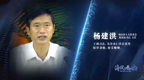 保山市人大常委会原党组书记、主任杨建洪干预司法,为乔永仁涉法案件提供帮助,撑腰站台,收受贿赂。
