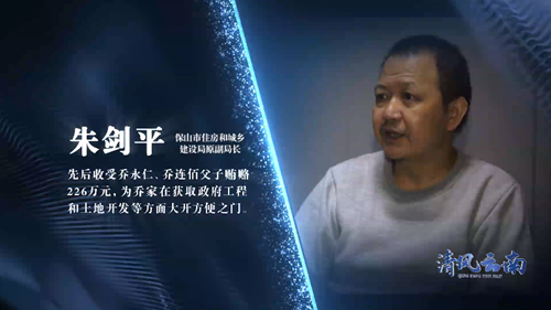 保山市住房和城乡建设局原副局长朱剑平收受乔永仁、乔连佰贿赂226万元,为乔家在获取政府工程和土地开发等方面大开方便之门。