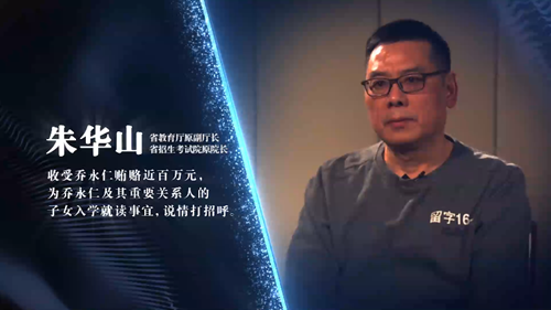 云南省教育厅原副厅长、省招生考试院原院长朱华山,收受乔永仁贿赂近百万元,为乔永仁及其重要关系人的子女入学就读说情打招呼。