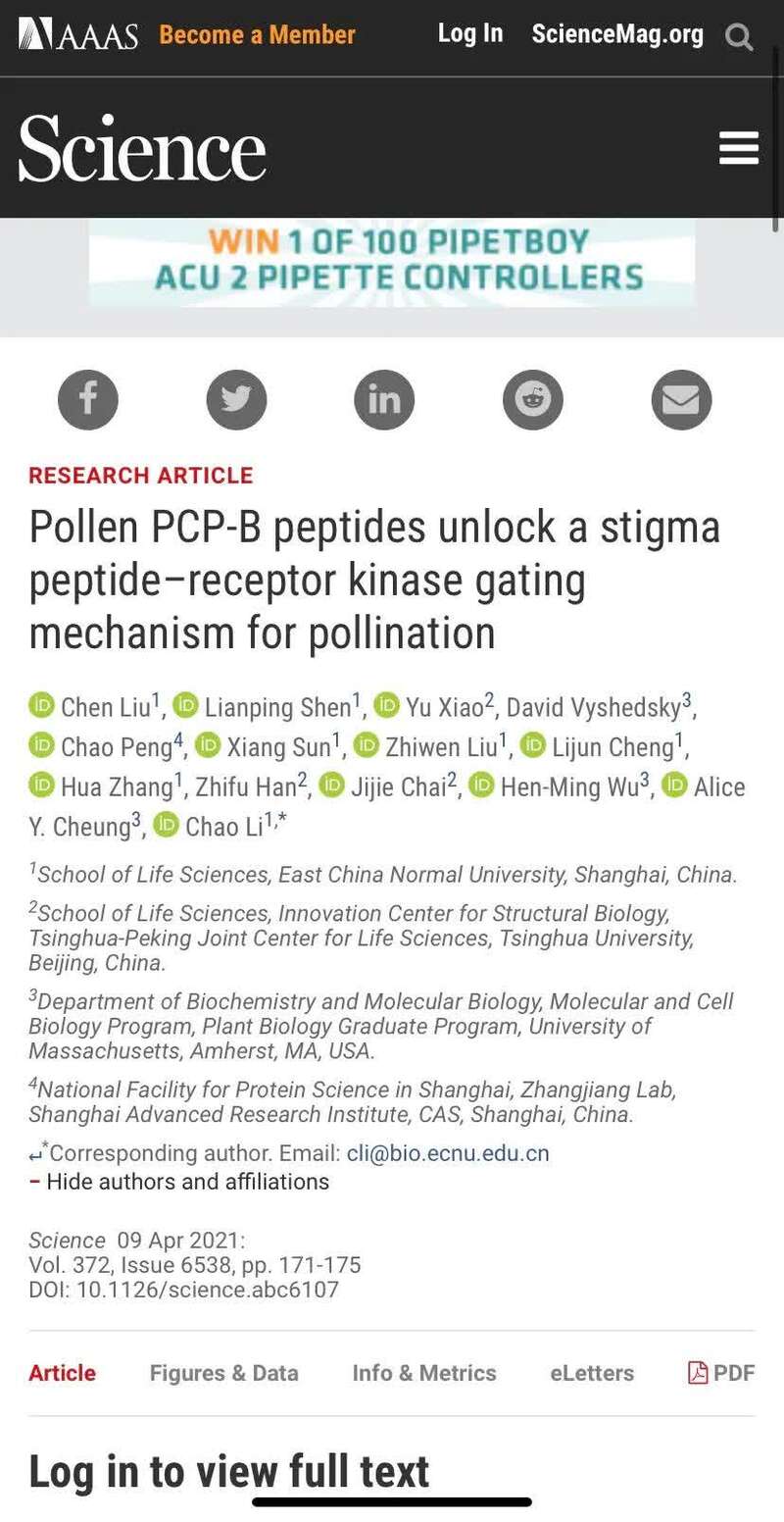 重磅!华东师大《科学》顶刊发文,破解植物授粉奥秘