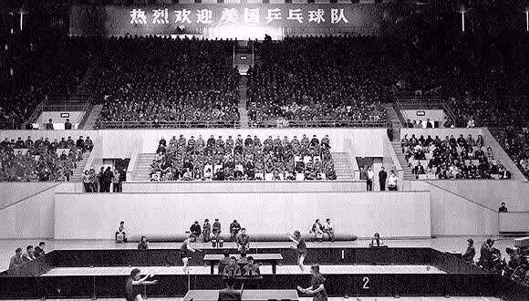 在此前的第31届世界乒乓球锦标赛上,美国运动员科恩一次误上了中国队的班车,中国队队员庄则栋热情地与他打招呼,还赠送了一块印有黄山风景的杭州织锦作为礼物。从此,隔绝了22年的中美两国人民友好往来的大门悄然打开。