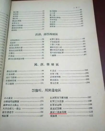 《中国工农红军歌曲选》目录