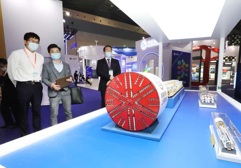 4月15日,第八届中国(上海)国际技术进出口交易会在上海世博展览馆开幕。这是参观者在一个盾构机模型展品前驻足观看。新华社记者 方喆 摄