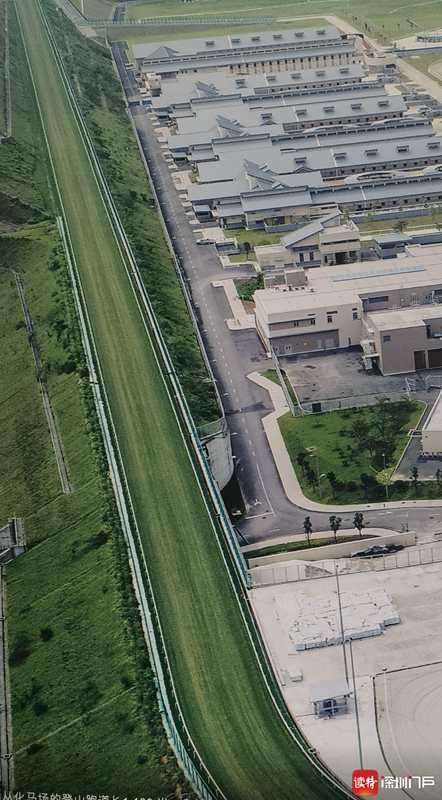 赛马场投资20亿,面积超过香港马场,设有马圈、训练场、马医院、赛马道,可同时容纳六百余匹赛马,是内地唯一可赛马的专业马场。其中,马场内一条爬坡训练跑道1000余米,为亚洲最长。