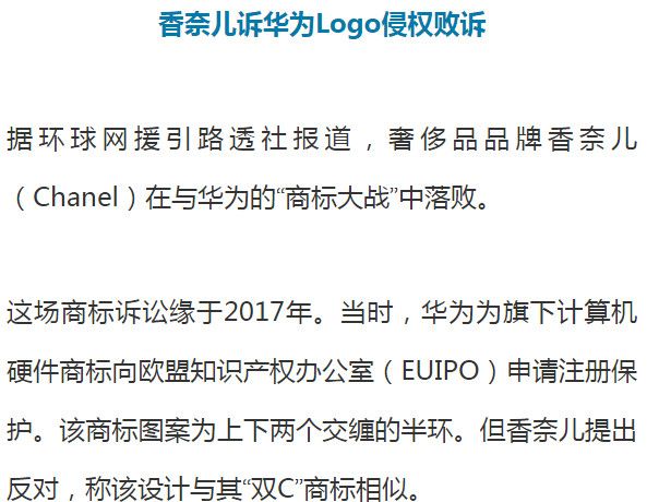 冲上热搜第一!香奈儿诉华为Logo侵权败诉!