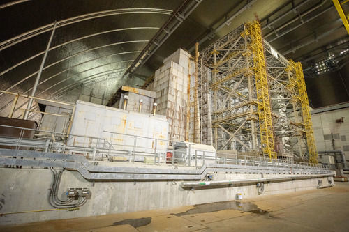 这是2019年7月10日拍摄的乌克兰切尔诺贝利核电站新掩体内部。新华社发(乌总统办公厅供图)