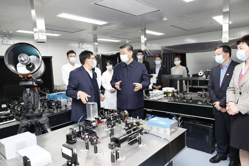 ↑2021年4月19日,习近平在清华大学成像与智能技术实验室同师生们亲切交谈。