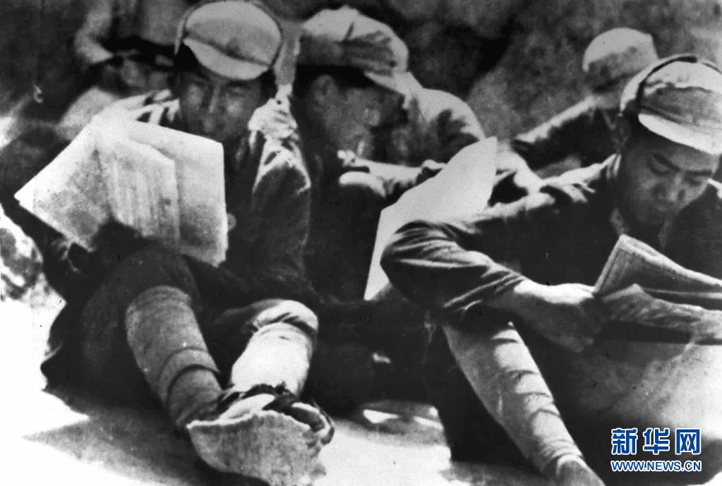 中国人民抗日军政大学的学员在学习整风文件(资料照片)。新华社发