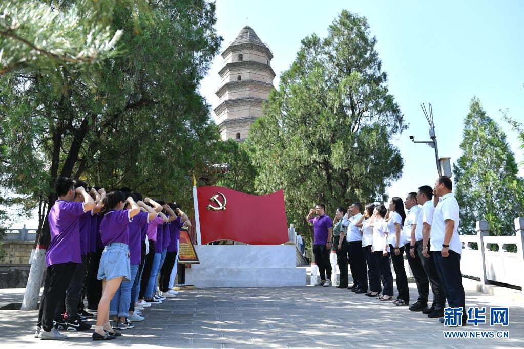 2020年6月29日,党员干部在延安市宝塔山重温入党誓词。新华社记者 张博文 摄