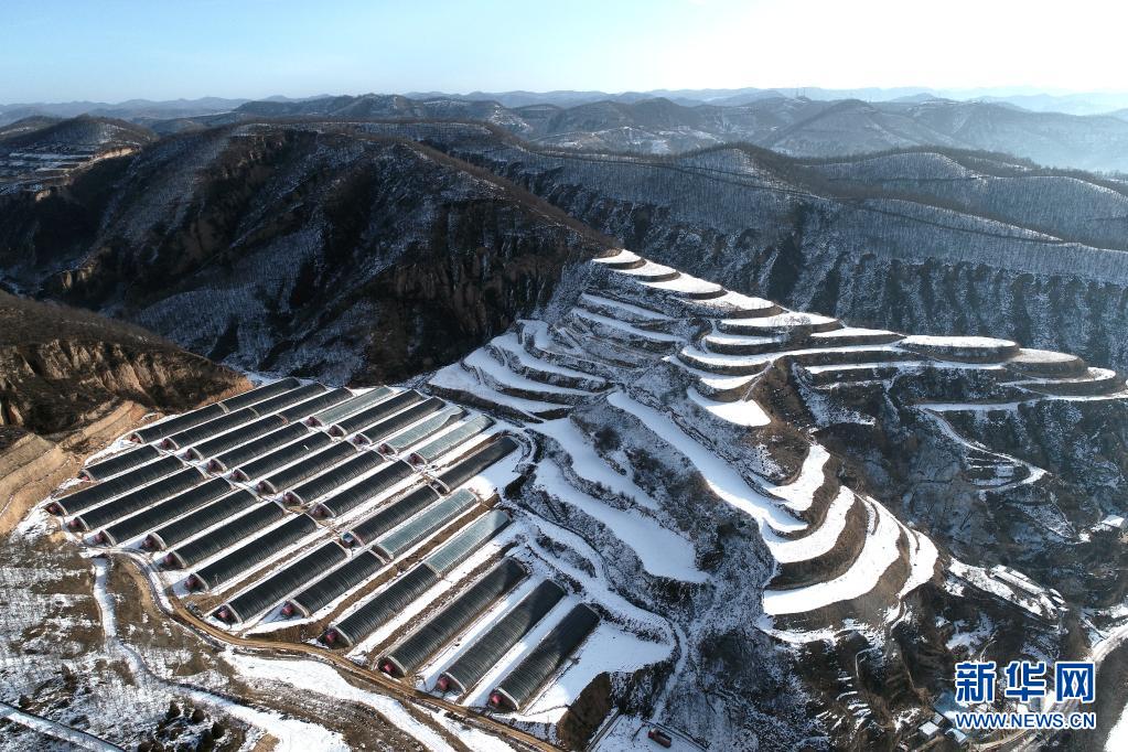 这是2020年1月20日拍摄的延安市宝塔区青化砭镇梁村温室大棚(无人机照片)。新华社记者 张博文 摄