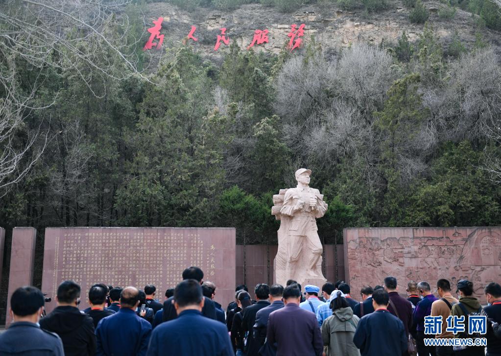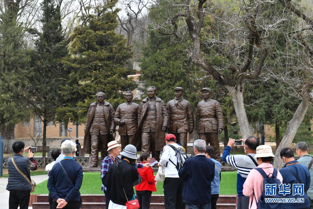 2021年3月29日,参观者在延安市张思德广场进行现场教学活动。新华社记者 张博文 摄