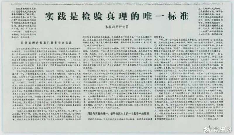 图为《光明日报》以特约评论员的名义公开发表《实践是检验真理的唯一标准》一文。