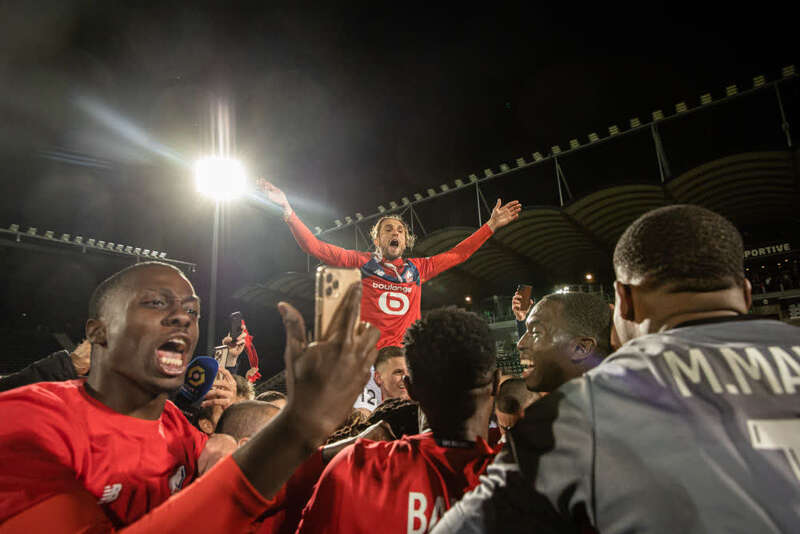 里尔队球员庆祝夺冠。新华社发(奥雷利安·莫里萨尔摄)