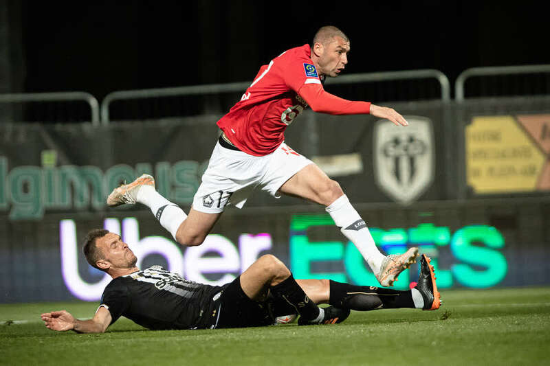 里尔队球员伊尔马兹(上)在比赛中。新华社发(奥雷利安·莫里萨尔摄)