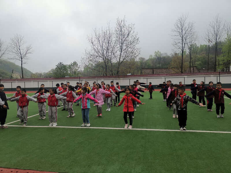 △北梁红军小学学生在操场上课间操