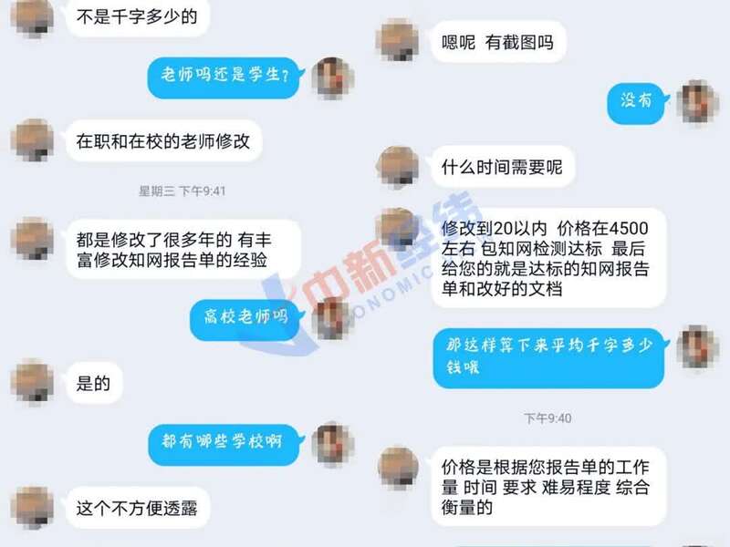 另一位卖家同样称,平台上是在职和在校的老师提供降重服务,有丰富的修改知网报告单经验。“修改到重复率20%以内,价格在4500元左右,包知网检测达标,最后给您的就是达标的知网报告单和改好的文档。”该工作人员表示价格是根据购买者提供的查重报告单的工作量、时间、要求及难易程度综合衡量的。
