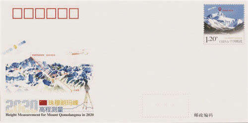 图为2020年,中国邮政发行的《2020珠穆朗玛峰高程测量》纪念邮资封