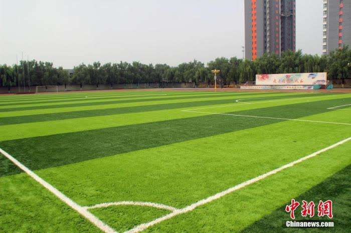 资料图:北京市海淀区中关村第三小学雄安校区足球场草坪已修整完善。 中新社记者 宋敏涛 摄