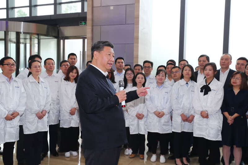 ↑2018年4月24日至28日,习近平在湖北考察。这是26日上午,习近平在位于东湖高新区的烽火科技集团考察企业创新发展情况。