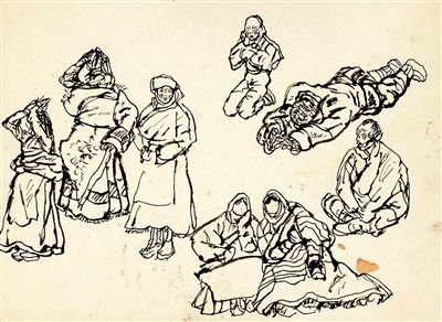 于是邰武旗发动工作室的小伙伴停下手头的工作,在作者的画室大面积搜索。五一连续几天加班,找出二百多件陈丹青1980年创作《西藏组画》的草图、速写、画稿以及相关文献,邰武旗顿时有种像“给牧羊人找到了草场”般的欣喜,也使他“挂出来给大家看看”的信心倍增。